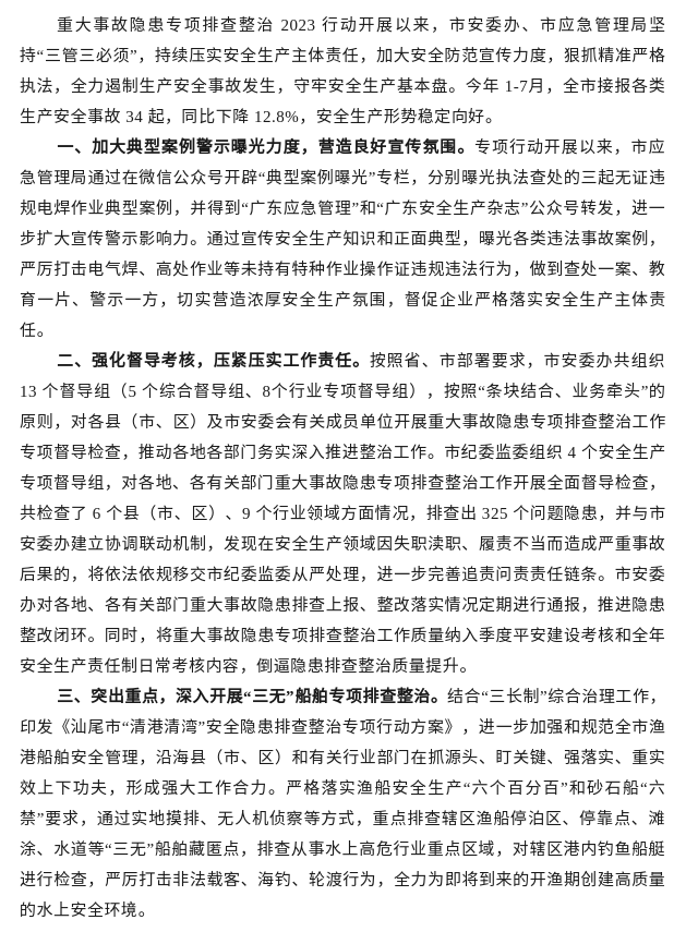 汕尾市多措并舉推進重大事故隱患專項排查整治行動走深走實
