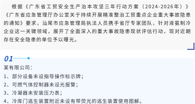【典型案例曝光】液氨制冷企業存在多個安全漏洞?整改!