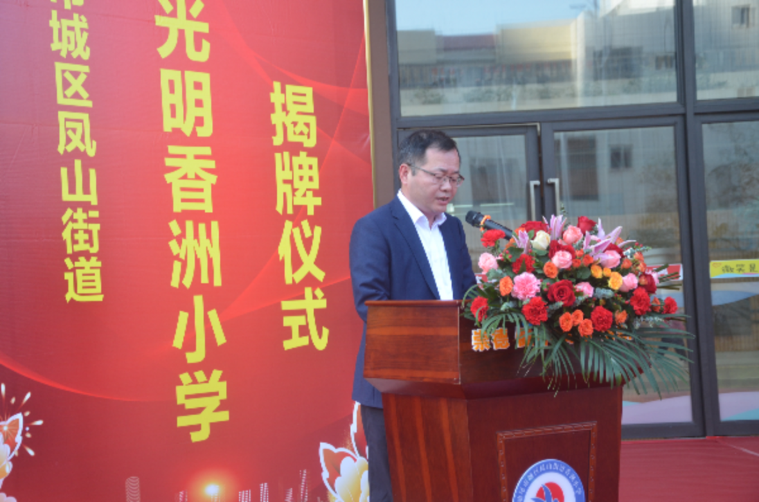 2024年116日上午,汕尾市城區鳳山街道光明香洲小學揭牌儀式隆重舉行。出席揭牌儀式的領導嘉賓有:深圳市光明區對口幫扶汕尾市城區工作組組長、汕尾市城區委常委、副區長張新順;汕尾市城區副區長周宏森;汕尾市城區副區長林史謙;深圳市光明區教育局黨組成員、副局長,光明區實驗學校(集體)黨委書記曾廣波;汕尾市城區教育局局長陳小凱及同行領導,儀式由汕尾市城區鳳山街道光明香洲小學副校長陳奕群主持。