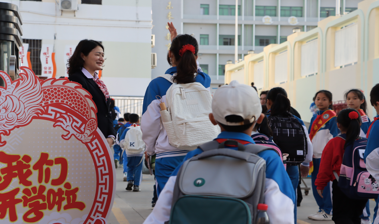 春風已吹響號角,暖陽昭示著希望。歡聲笑語中,我們告別了溫馨的春節,結束了平安快樂的寒假生活,迎來了新的學期,回到熟悉的校園。新學期第一天,我校領導、老師早早地在學校門口迎接光明學子的到來。