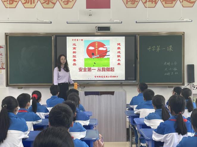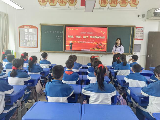 開學典禮結束后,各班開展安全主題教育和“綠美汕尾”開學第一課,對學生日常行為規范、抵制校園欺凌、禁毒教育、防溺水、交通、消防安全等方面進行要求。積極做好安全教育工作,提高學生安全意識,積極推進生態文化教育,創建平安文明校園。