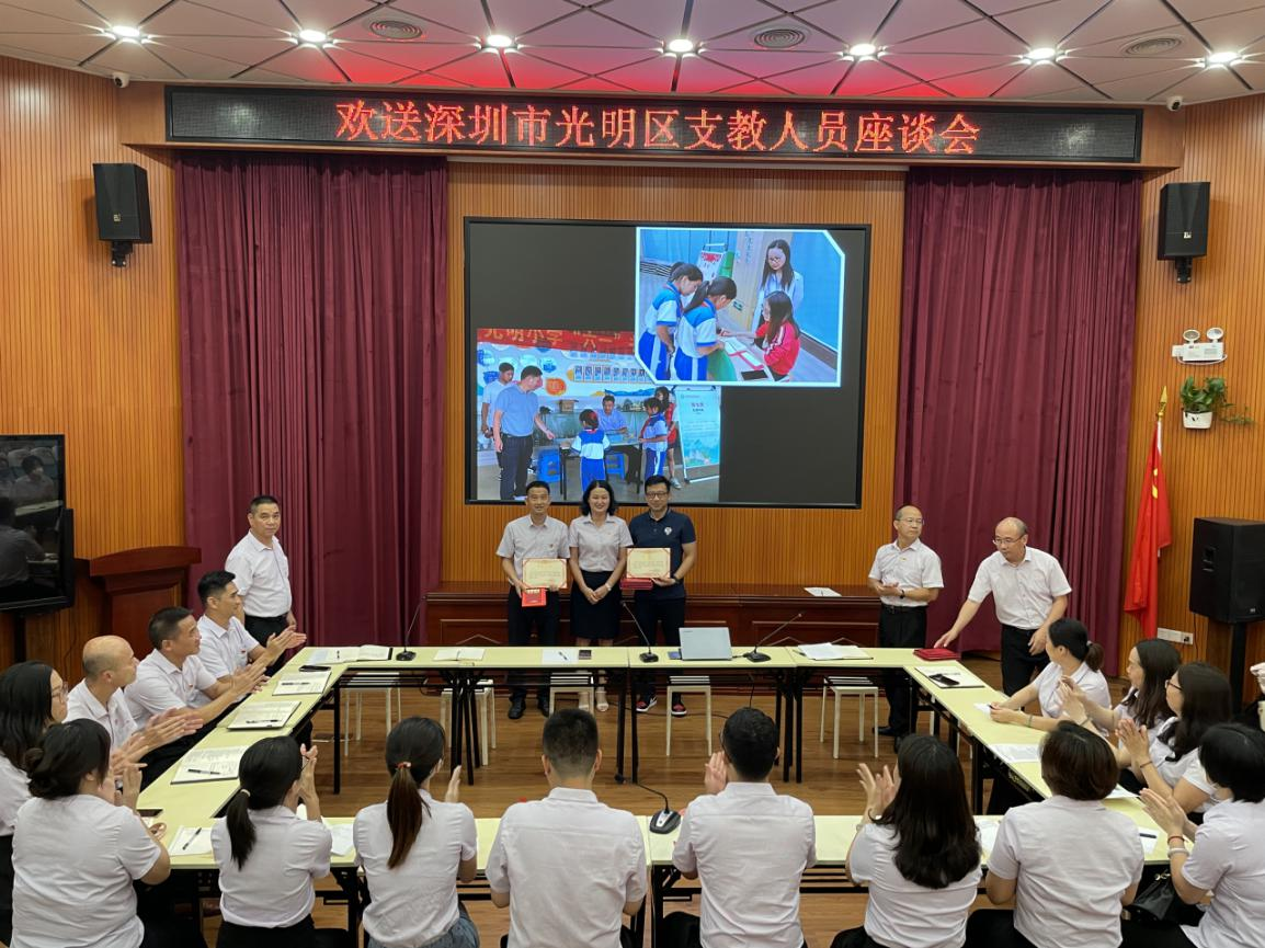 范漢崇副校長主持會議時發表了熱情洋溢的感言,他期望本次座談會能留住美好的紀念,為下一次的相聚拉開序幕。三位支教副校長俯身教育,勇挑重擔,敬業付出,幫扶新教師,友愛師生,堪為全體老師的楷模,并為光明小學教學質量的提升做出了突出的貢獻。范副校長還代表全校師生為三位支教副校長送上美好的祝福!