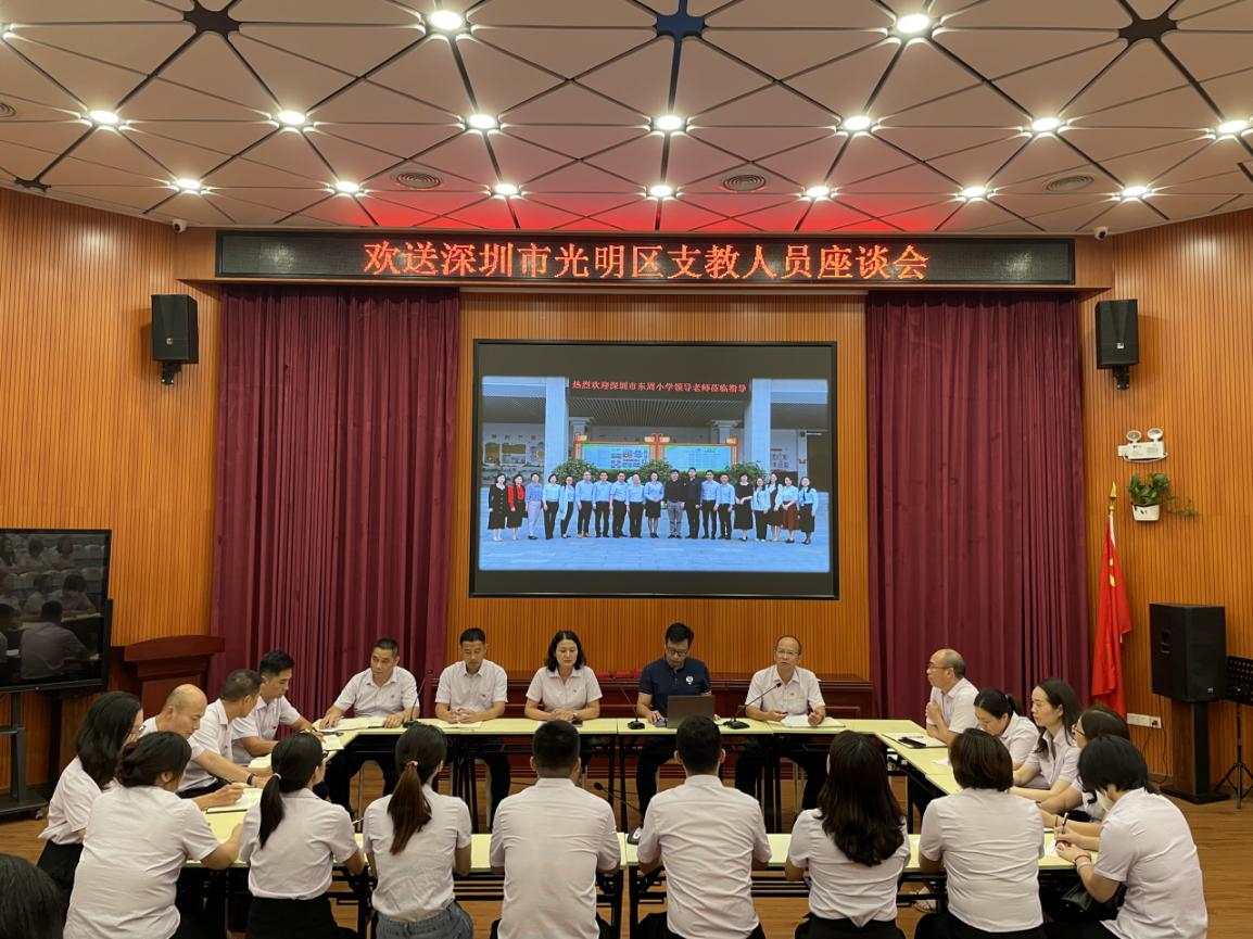 時間猶如指尖的沙漏,緩緩流逝,深圳市光明區三位支教副校長來光明小學支教了一學年,即將返回原來單位。為感謝三位支教副校長的無私奉獻,2023年6月30日下午,光明小學舉辦歡送座談會。歡送儀式由范漢崇副校長主持,全體教職員工參加。
