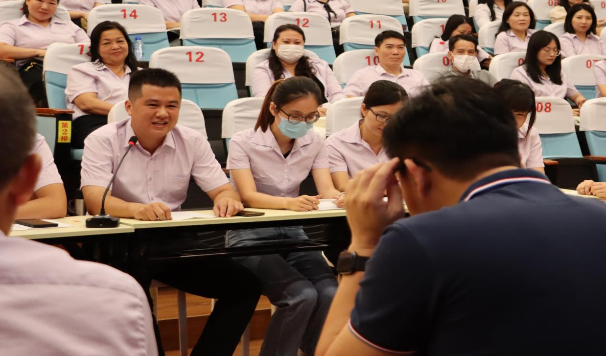支教的洪仲謹副校長以“光小朝夕 不負善美”為主題,圍繞“感謝 感恩 感想 暢想”發表支教感言,他不忘利用這個發言機會,再次向光明小學全體教師提出教育新理念,他強調說:“‘以生為本’是解鎖課堂的鑰匙,大問題教學要設計好,情景設計要生活化、趣味化,課堂組織教學要聚焦學生的習慣培養”。并激勵大家愛上并享受教書育人這份職業。