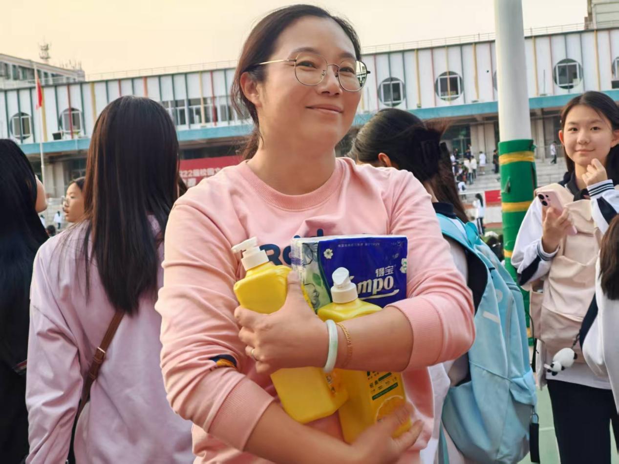另一場的搶寶貝比賽則將歡樂氛圍推至高潮。兩人一組面對小凳而立,聽著口令摸頭部、耳朵和膝蓋,隨著一聲“搶”字落下,老師們瞬間俯身沖刺,身手敏捷地搶奪凳上的生活用品。有人反應神速率先得手,高舉獎品與對手相視大笑;有人慢了半步,卻也樂呵呵地擺手再戰,兩次機會里滿是輕松與趣味。賽場邊的加油聲、哄笑聲交織成一片,平日里的工作壓力在這一來一回的比拼中煙消云散。