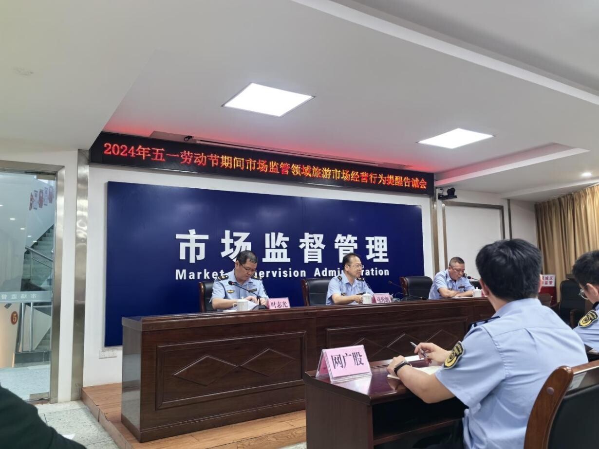 “五一”將至,為進一步規范市城區“五一”期間市場監管領域旅游市場秩序,保護消費者合法權益,維護良好旅游消費市場環境,4月26日下午,市、區市場監管局聯合召開2024年“五一”期間市場監管領域旅游市場經營行為提醒告誡會,市市場監管局價監競爭科四級高級主辦張作鵬等相關領導同志、區市場監管局副局長葉志光等相關領導同志以及城區餐飲、旅游住宿等行業代表參加本次會議。