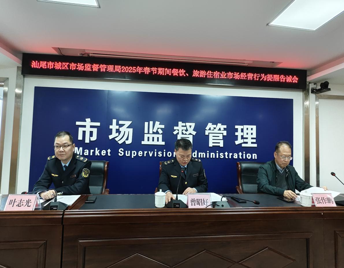 春節將至,為進一步規范市區春節期間市場監管領域旅游市場秩序,保護消費者合法權益,優化旅游市場環境,1月22日下午,城區市場監管局聯合市市場監管局組織召開2025年春節期間市場監管領域旅游市場經營行為提醒告誡會,區市場監管局黨組書記、局長曾昭好及市市場監管局價監競爭科四級高級主辦張作鵬出席會議并講話,區市場監管局黨組成員、副局長葉志光主持會議,城區各餐飲、旅游住宿等行業代表參加本次會議。