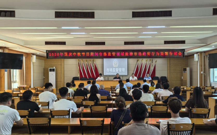 國慶中秋節(jié)日將至,為進一步規(guī)范國慶中秋節(jié)日期間市場監(jiān)管領(lǐng)域旅游市場秩序,保護消費者合法權(quán)益,優(yōu)化旅游市場環(huán)境,9月26日下午,城區(qū)市場監(jiān)管局組織召開2025年國慶中秋節(jié)日期間市場監(jiān)管領(lǐng)域旅游市場經(jīng)營行為提醒告誡會,區(qū)市場監(jiān)管局局長陳翰易、市市場監(jiān)管局價監(jiān)競爭科科長鄭婷婷、市消保會主任莊偉鋒、區(qū)市場監(jiān)管局副局長林錫良等相關(guān)領(lǐng)導(dǎo)同志以及城區(qū)餐飲、旅游住宿等行業(yè)代表參加本次會議。