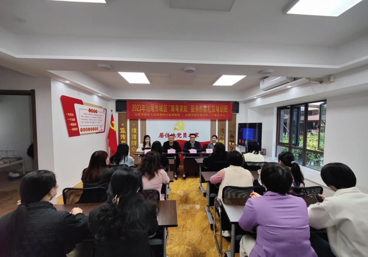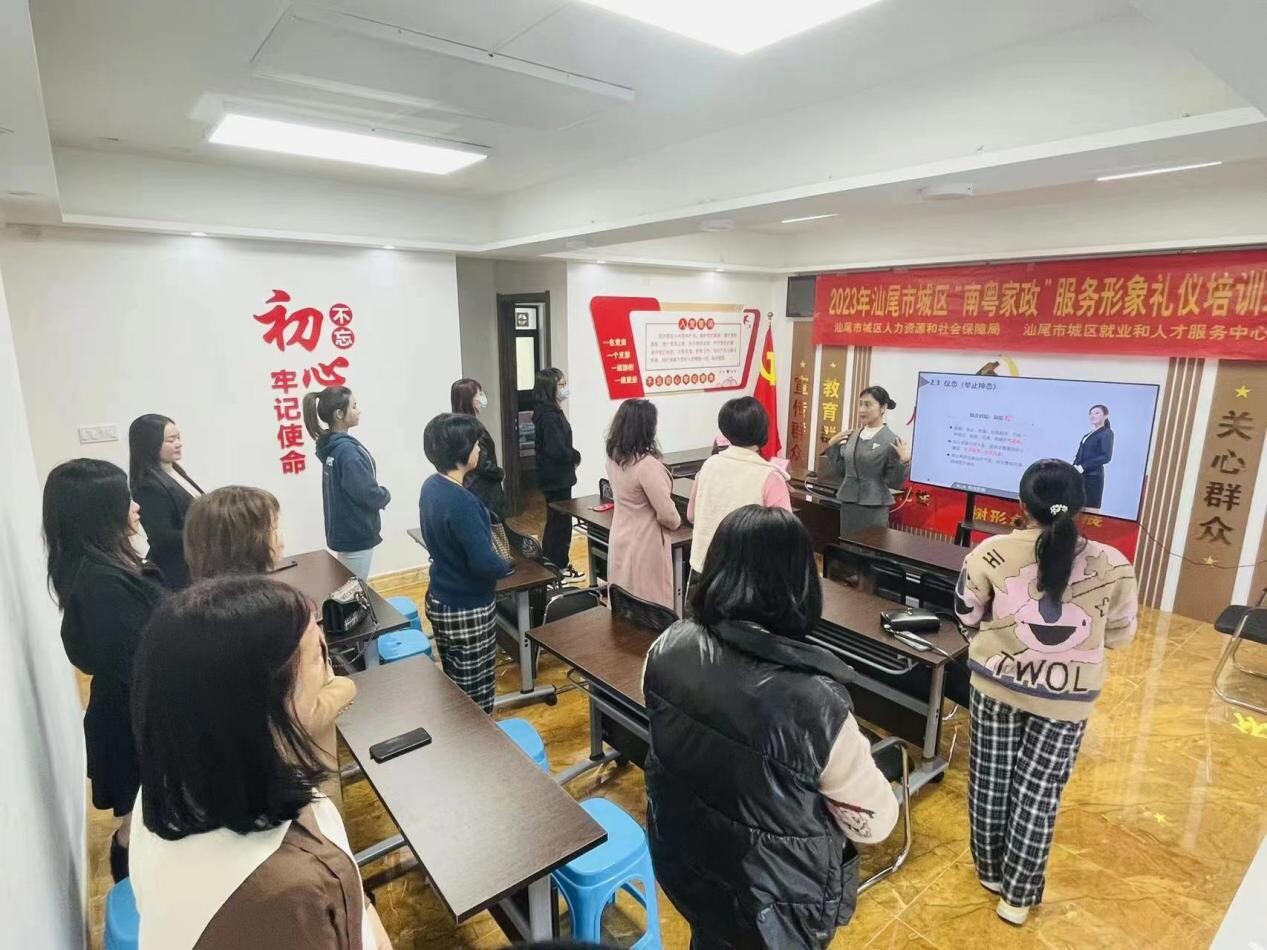 為全力促進城區(qū)家政服務(wù)業(yè)提質(zhì)擴容,提升家政服務(wù)業(yè)從業(yè)人員的綜合素質(zhì)和職業(yè)技能,擴大我區(qū)家政人才供給,推動“南粵家政”工程高質(zhì)量發(fā)展,3月7日,區(qū)人社局在汕尾市城區(qū)“南粵家政”基層服務(wù)示范站舉辦第二期“南粵家政”培訓(xùn)班—服務(wù)形象禮儀,為10余名家政從業(yè)人員及社區(qū)居民講授家政服務(wù)禮儀相關(guān)知識。區(qū)人社局黨組成員、副局長劉友揚及區(qū)就業(yè)中心副主任葉建塔等出席開班儀式。