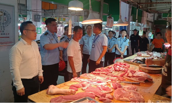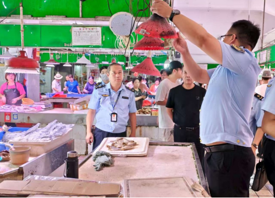 為進一步規范農貿市場經營秩序,提升市場管理水平,營造干凈、整潔、文明、有序、安全的市場環境,7月9日,區市場監管局局長陳翰易帶隊,聯合區城管局、香洲街道、鳳山街道、新港街道等部門大力開展農貿市場專項聯合整治行動。行動共出動執法人員35人次,現場督促立行立改相關問題38處,收繳違規使用“生鮮燈”14盞,發出責令整改通知書4份,當場出具行政處罰決定書1份。