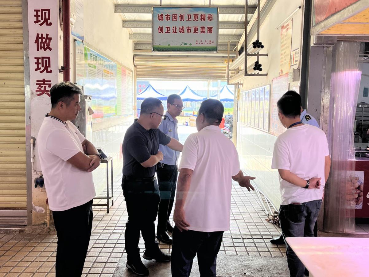 以農貿市場和食品生產經營單位為核心防控陣地,層層壓實主體責任,全方位筑牢安全防線。在農貿市場管控上,實現“五關齊守”:一是宣傳引導關,通過張貼海報、循環播放語音、電子屏滾動標語等方式,營造全員防控的濃厚氛圍;二是設施保障關,督促市場方在市場下水道口加裝防蚊閘,在門口配備防蚊噴霧并張貼使用提示,完善防疫硬件設施;三是日常保潔關,要求市場營業期間至少配備1名佩戴紅袖章的專職保潔員,每小時開展一次常態化保潔,每日休市后全面清洗,按規范開展專業消殺;四是隱患排查關,重點對過道、泡沫箱、閑置瓶罐等易積水區域及污水排放情況進行細致排查,并全面清理長期未經營攤位,發現問題立行立改;五是臺賬管理關,督促業主建立健全每日清洗消殺臺賬,確保登記信息真實完整、有據可查。在食品生產經營單位監管上,由專項整治組按片區開展精準督導,督促經營者嚴格落實蚊媒防控和衛生管理要求,定期組織環境衛生大掃除與孳生地清理;深入餐飲單位前廳后廚,重點檢查“三防”設施配備與使用情況,從源頭遏制病媒生物滋生。