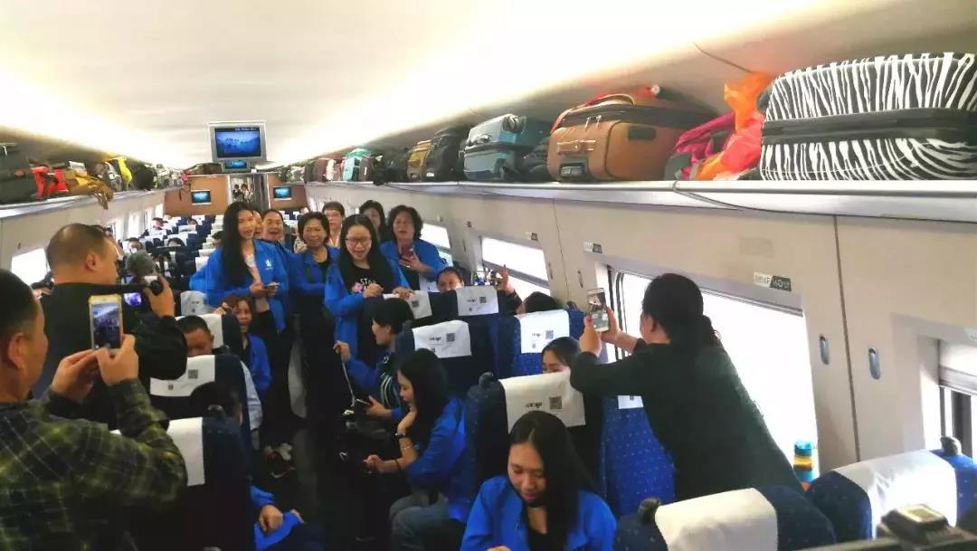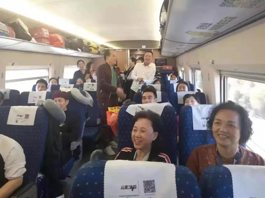 飛馳的列車上,人人滿面春風,處處歡聲笑語。