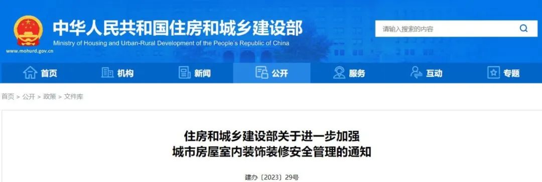 住房和城鄉(xiāng)建設(shè)部:進一步加強城市房屋室內(nèi)裝飾裝修安全管理